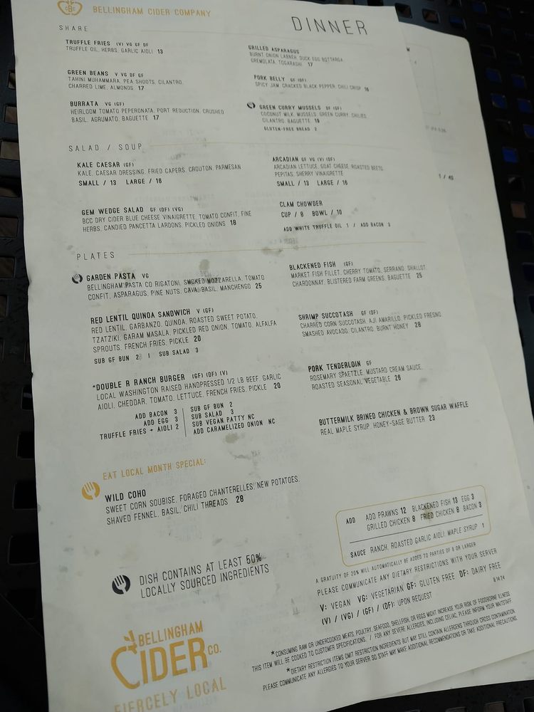 Bellingham Cider Company offers a diverse menu with vegan and vegetarian options, a full bar, and a welcoming atmosphere suitable for all. Located in Bellingham, WA, the brand is praised for its quality food, attentive service, and delicious cider varieties. Customers rave about the tasty burgers, chicken and waffles, and flavorful cider options like Strawberry Rhubarb and Blackberry Ginger. The outdoor patio provides a picturesque setting to enjoy the views while sipping on refreshing drinks. Happy hour specials and a comforting ambiance make it a go-to spot for locals and tourists alike. The pork belly dish stands out for its impeccable cooking and rich flavors. Overall, a visit to Bellingham Cider Company promises a delightful culinary experience in a fiercely local setting.